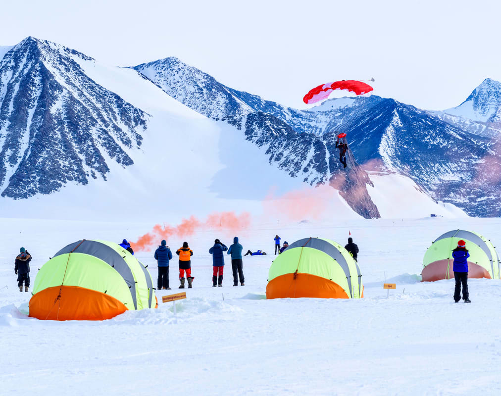 No other landscape can match the immense ice expanses of Antarctica – and the opportunity to freefall over the world’s highest, driest, windiest and most starkly beautiful continent is something few ever get the opportunity to do. You also get to stay at one of the world’s most remote campsites, the legendary Union Glacier station.