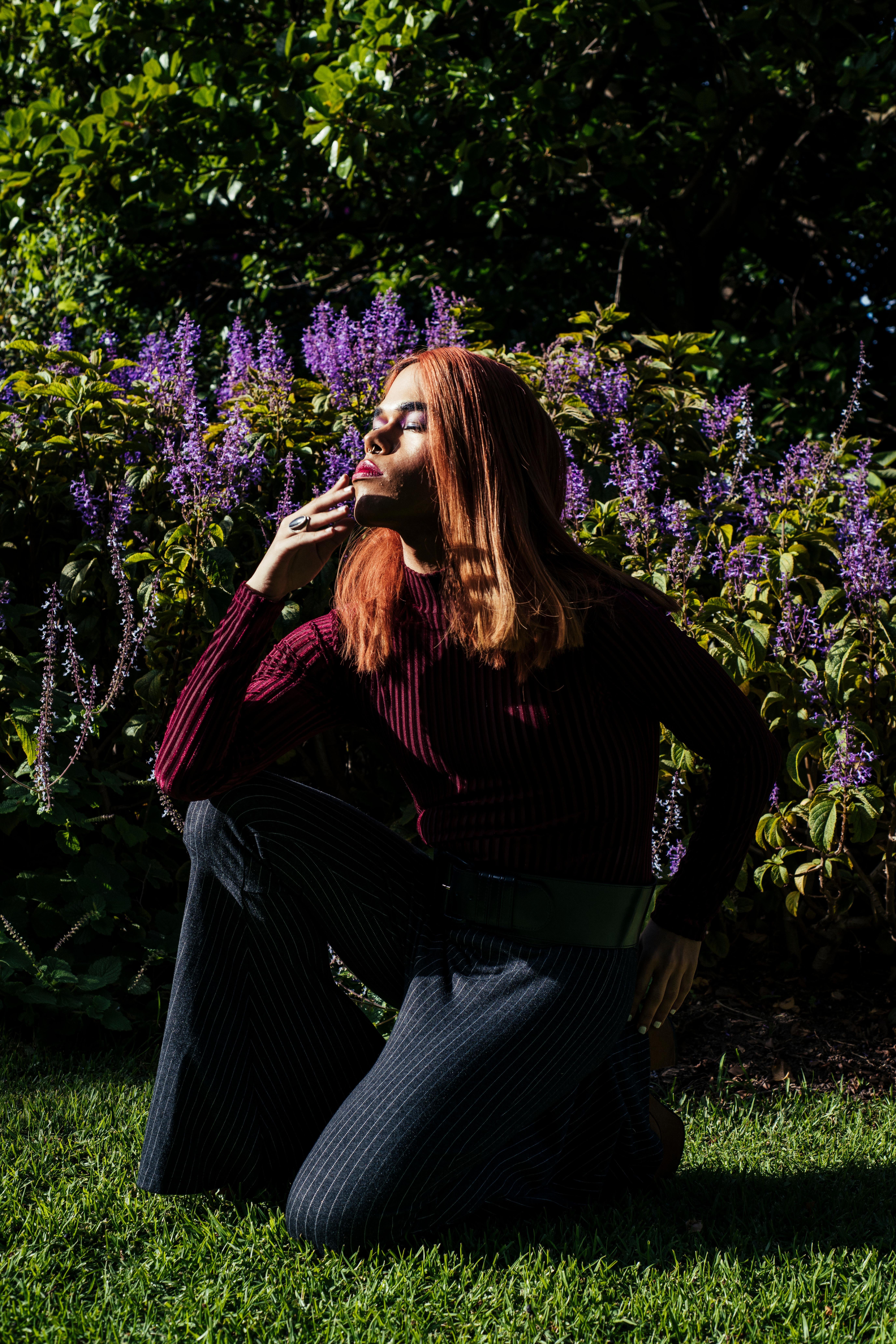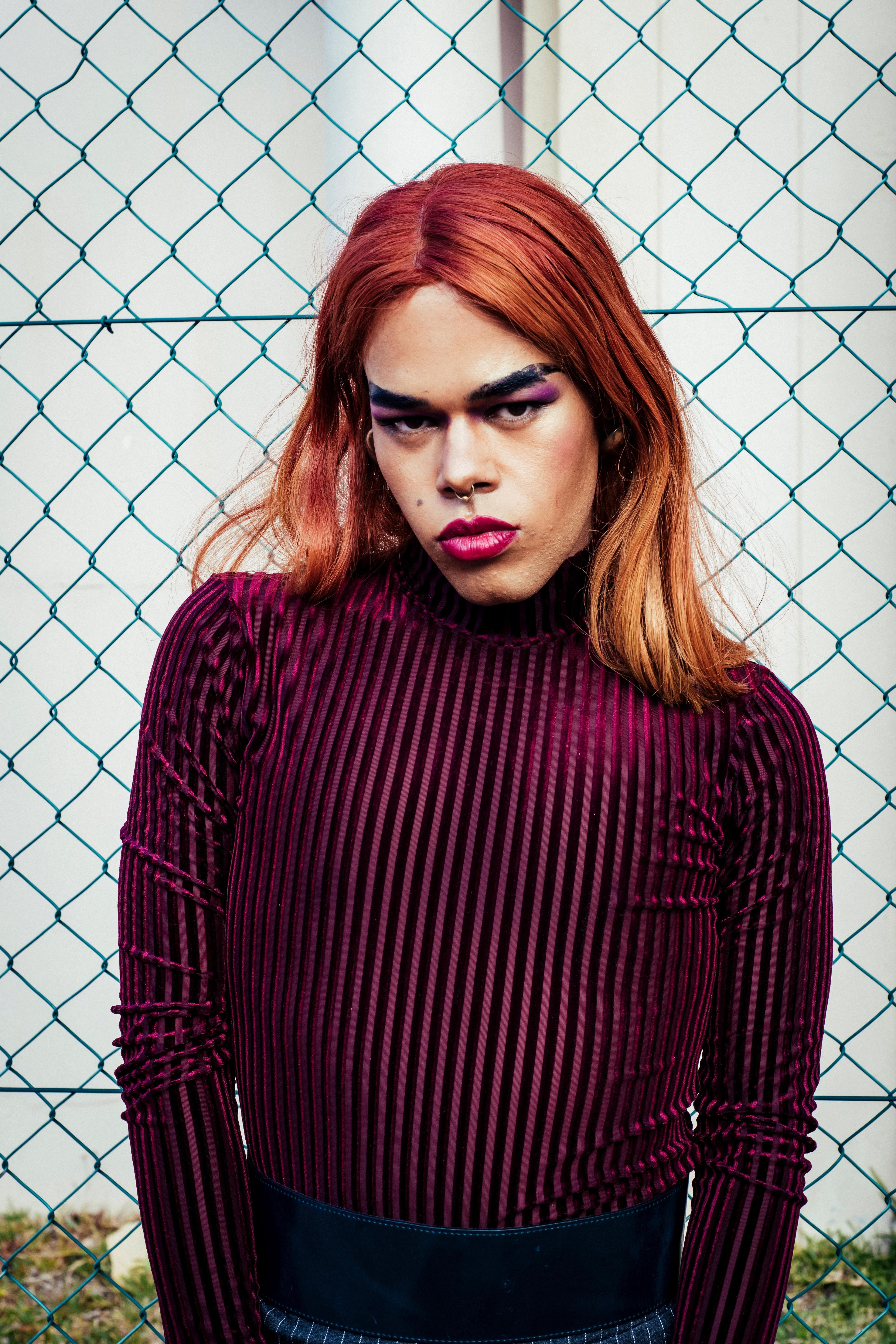 It’s a warm evening in Cape Town’s city centre. Angel-Ho’s fiery hair stands out amongst the pastels, as she sits cross-legged on the terrace enjoying an age-old recipe of mixed herbs for High Tea. A giant dollhouse surrounded by meters of green, this particular hotel was once reserved for first class Dutch travelers only, but today we sit, one mountainous, kind-eyed photographer in a colourful bucket hat, one dreadlocked young woman as bold and black as she likes her tea, and Angel Ho herself, an actively creative trans woman (face beat to ferocity) all of us clutching porcelain as if having tumbled down a deep hole after a very Caucasian cottontail.