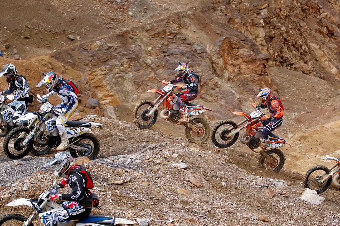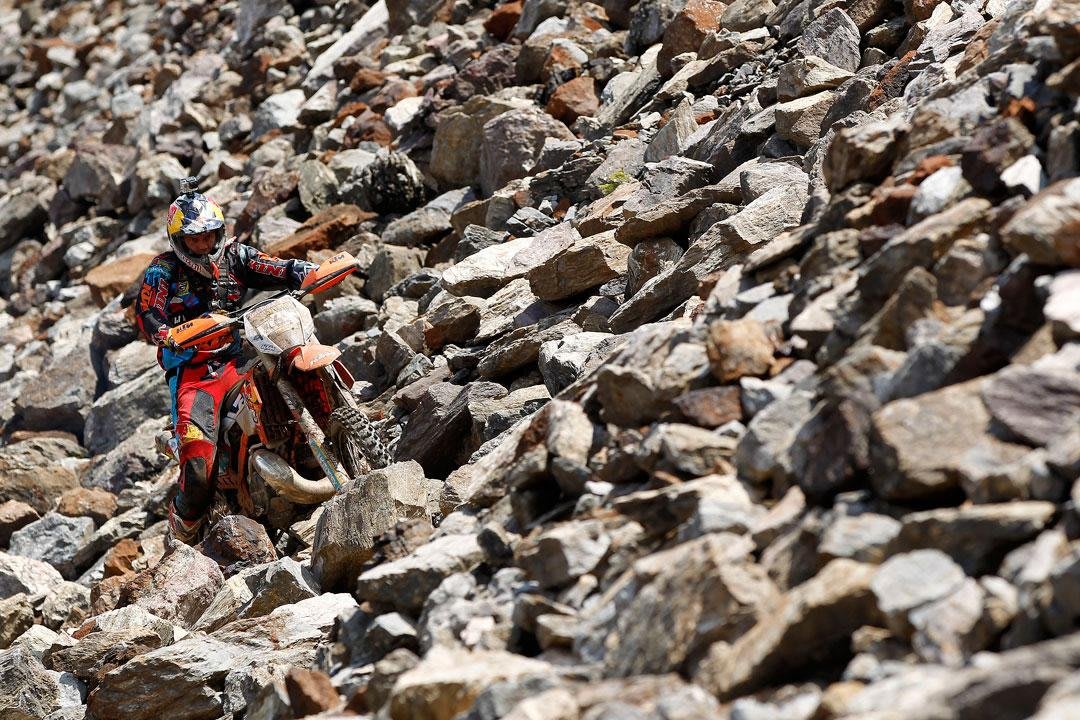 This is going to be my fifth time racing the Red Bull Hare Scramble and even though I’ve won it twice it’s still tough to remember exactly where I’m going. The quarry is so huge – it’s ridiculously big – so many things look the same. We walk the important sections beforehand, but it’s the maze of trails and paths scattered around the mountain that make you feel sort of lost. At times we’re just riding on instinct – senses in overdrive – scanning the horizon for any hazards or sheer drops that lie ahead. For a race like Erzberg you need 100 percent focus to succeed.