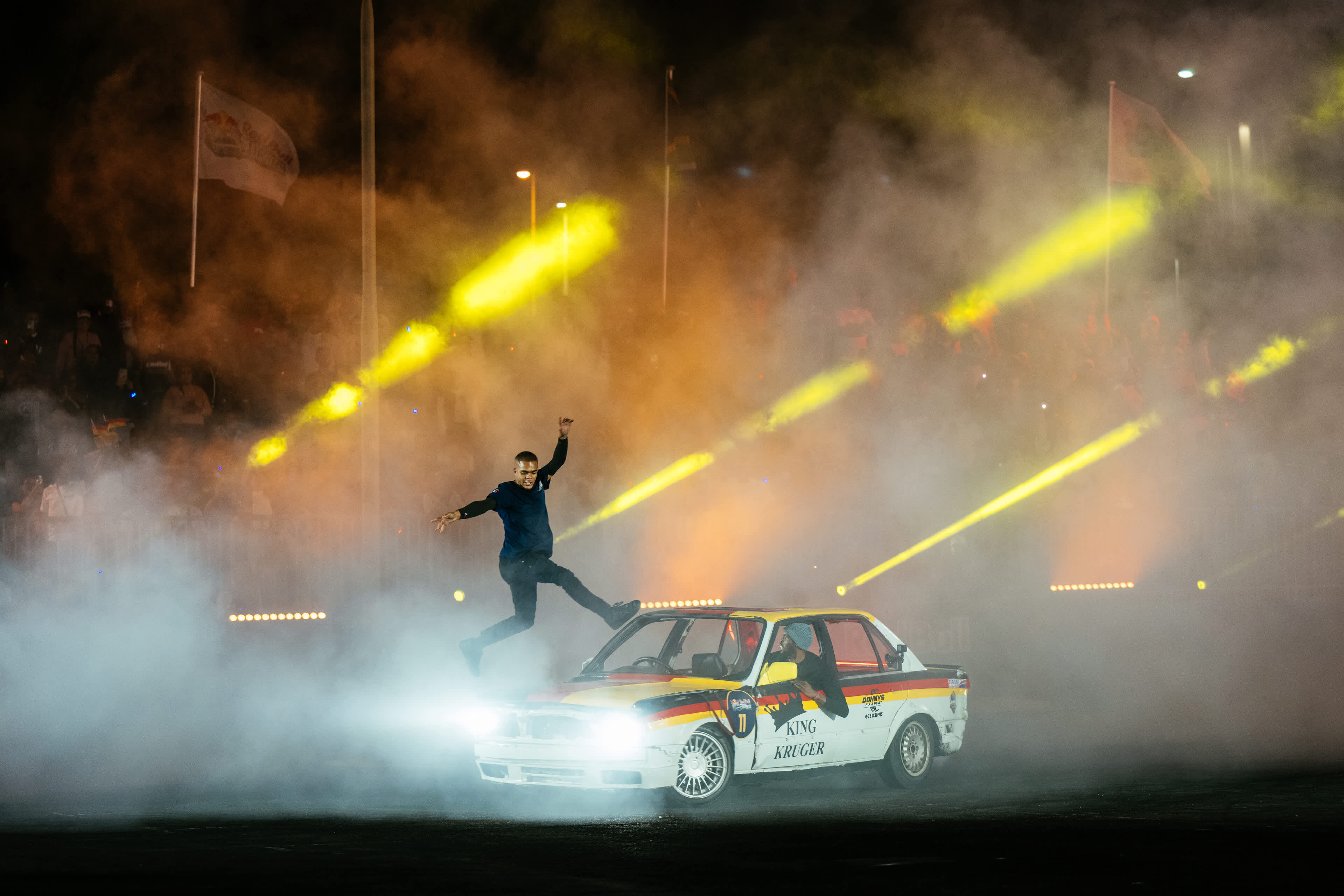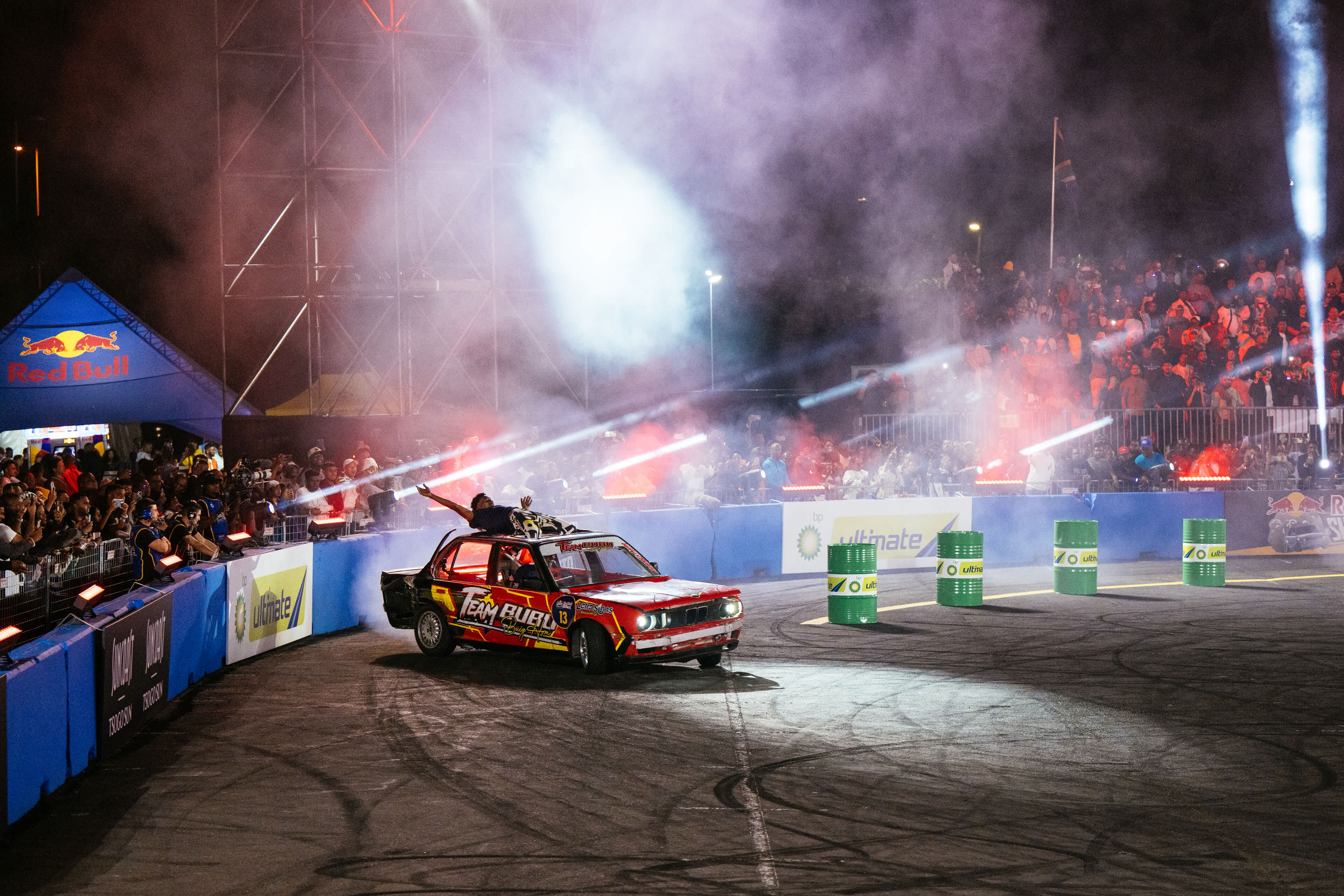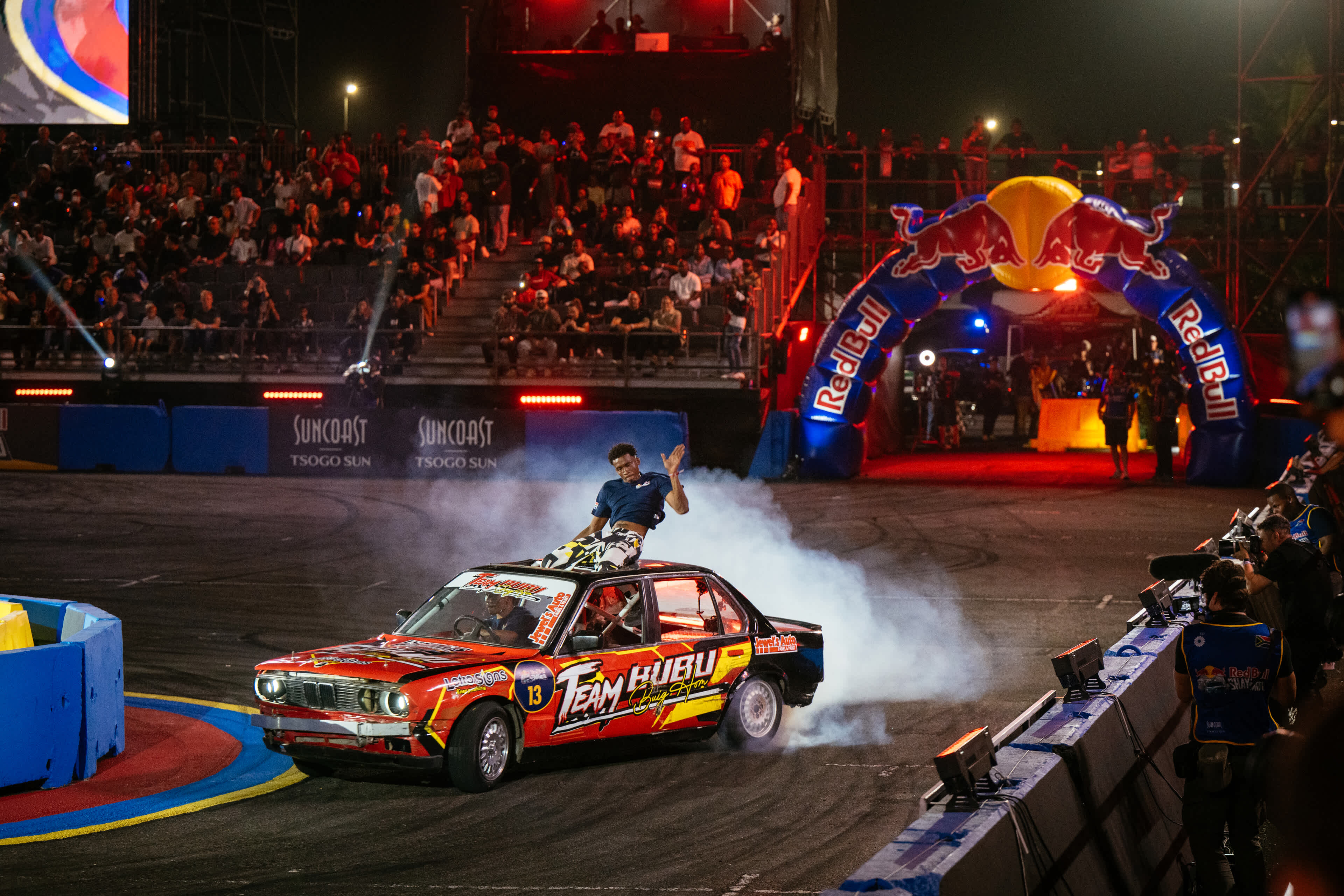 The road to the championship began on Friday, 17 April, when all sixteen competitors took to the Suncoast pitch for the qualifier round. Each driver had two minutes and thirty seconds to navigate the obstacle course; sliding targets, tight-box 360s, wall-kisses, and barrel drifts, while keeping their car locked in continuous spin. A panel of four expert judges; Jeff James, Lance Brophy, Sean February, and two-time champion, now Red Bull athlete Samkeliso “Sam Sam” Thubane, scored each run on vehicle control, creativity, style, and showmanship.