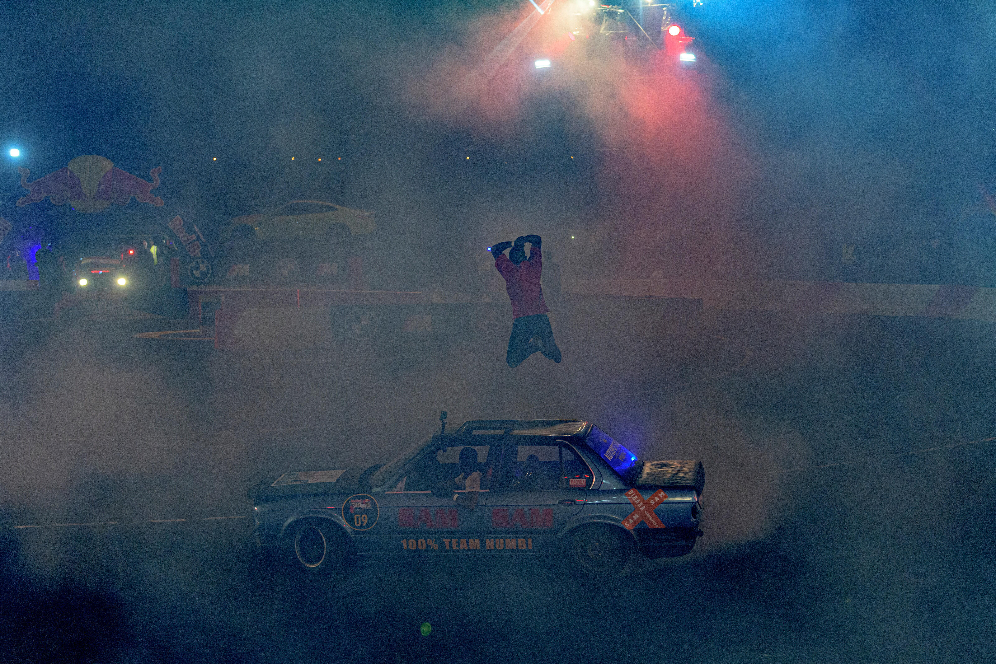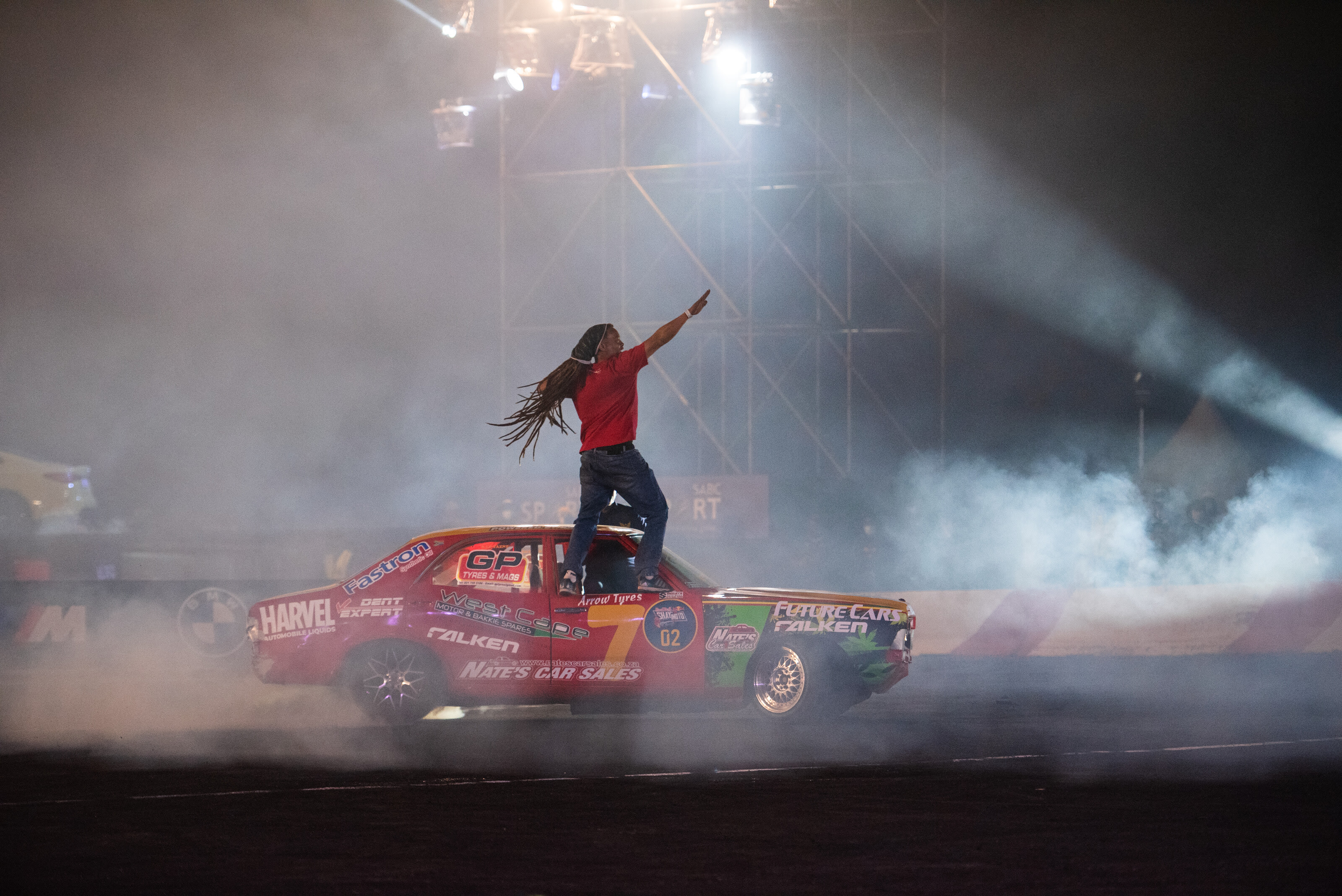 The final was closely contested; Boksie threw every ounce of showmanship at it but it was Sam Sam landing his signature move – essentially the most difficult iteration of jumping out and then back into the car counter-clockwise (traditionally one would execute this clockwise), that sealed the win for him.